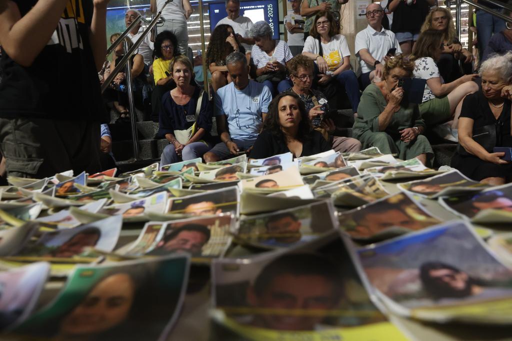 10月4日,被扣押人员家属和支持停战的人们在以色列特拉维夫举行游行集会,要求政府迅速在加沙地带实现停火,让被扣押人员回家。新华社发(吉尔·科恩·马根摄)