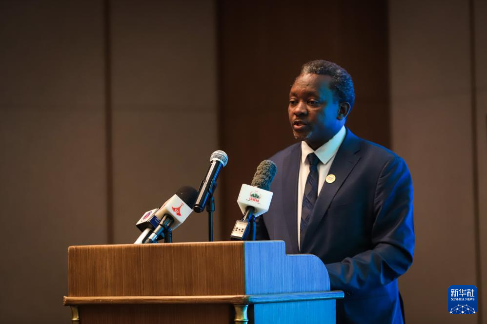 10月27日,在埃塞俄比亚首都亚的斯亚贝巴,非洲联盟(非盟)委员会教育科技创新委员加斯帕尔·班扬金博纳在开幕式上致辞。新华社发(迈克尔·特韦尔德摄)